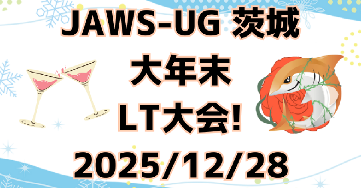 テーマは AWSの最新技術、今年の学び、失敗談、コミュニティ活動、そして来年への抱負まで自由! 技術的な発表からちょっとした小ネタまで、どんな内容でも大歓迎です!